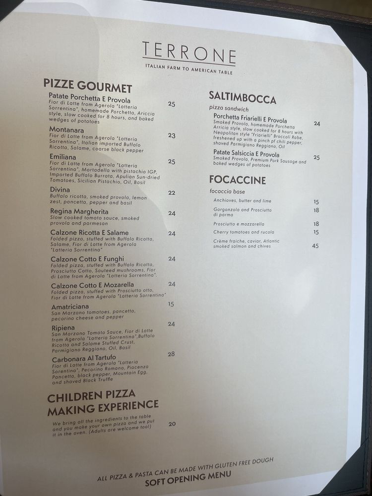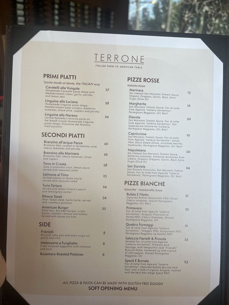Terrone, located in Queens, NY, offers a cozy Italian dining experience specializing in pizza. Customers praise the well-thought-out interior and attentive staff, creating a welcoming atmosphere. The menu offers a variety of delightful dishes such as brick oven pizzas, pastas, and seafood options like Tono in Crosta. Visitors appreciate the spacious outdoor seating with a beautiful view, perfect for enjoying a meal with a glass of wine. The restaurant is pet-friendly on the outdoor patio, adding to its charm. With a mix of traditional and contemporary elements, Terrone is a go-to spot for delicious Italian cuisine in a relaxing setting.
